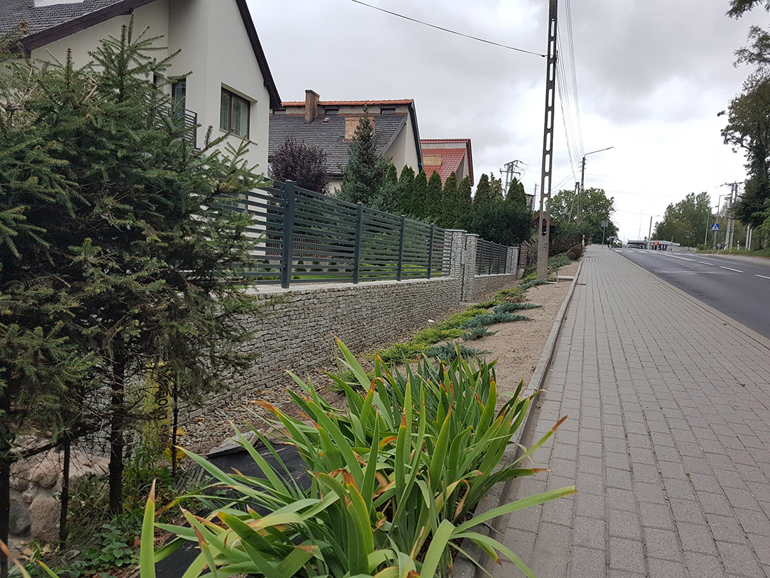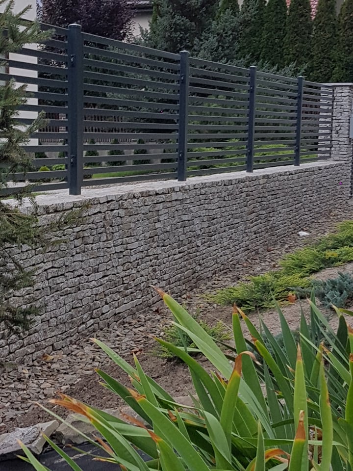 Ogrodzenie palisada pozioma + podmurówka granit