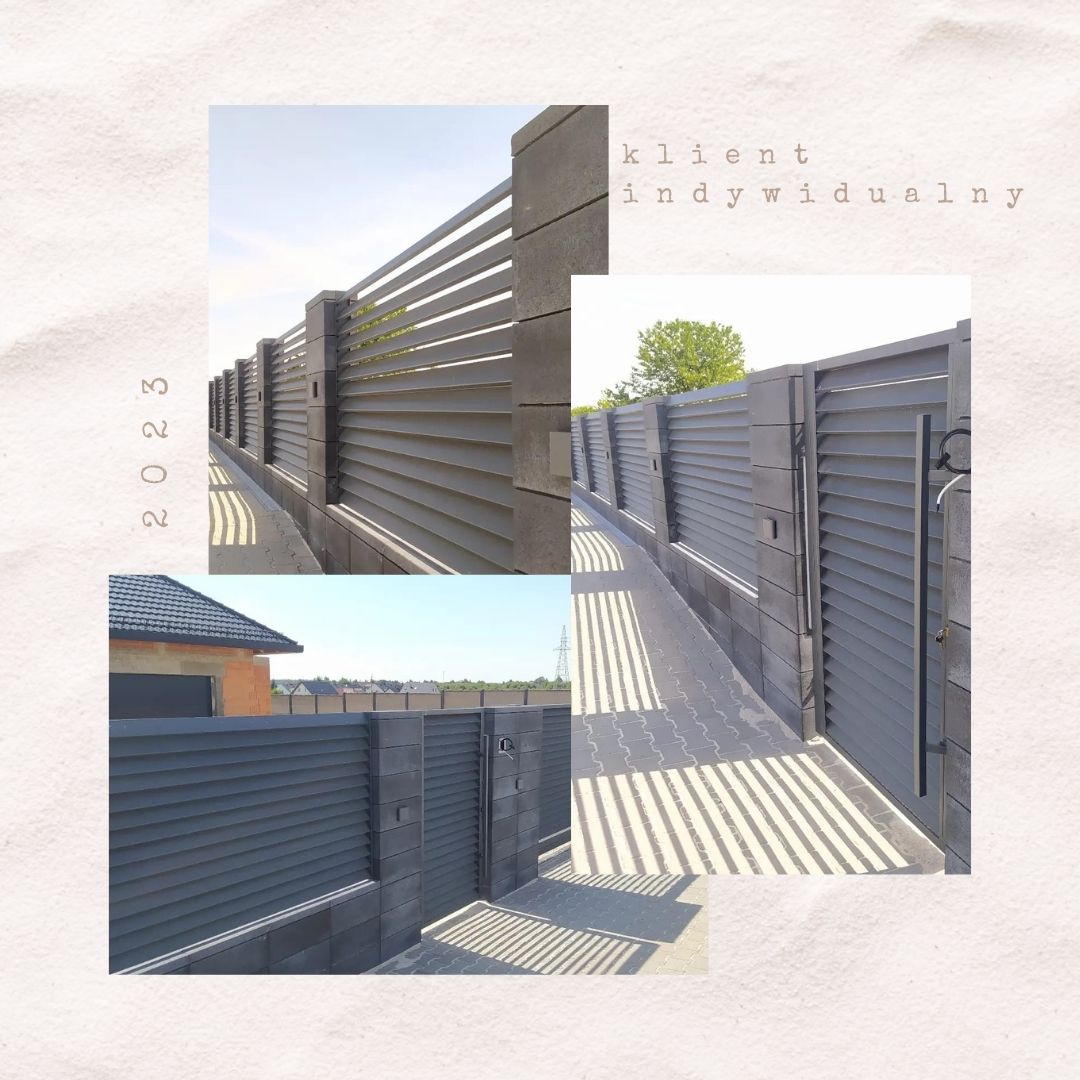 Ogrodzenie betonowe, z żaluzjami metalowymi